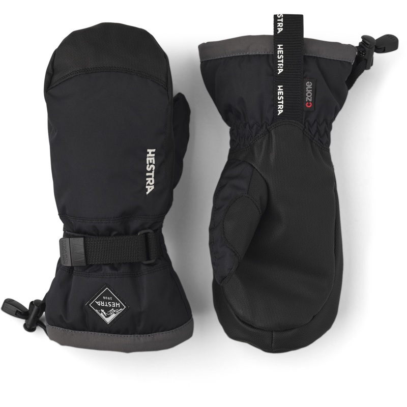 Warm and comfortable mitten for active kids. One of Hestras most popular junior versions perfect for skiing, play and outdoor activities in cold winter weather. Sewn in hardwearing polyester with a waterproof, breathable CZone membrane and a longer cuff to keep the snow out. Fingertips and palm are reinforced with PU coated synthetic fabric for extra strength and good grip. The liner is made of polyester fleece with warm synthetic insulation. Also available in three and five finger versions.