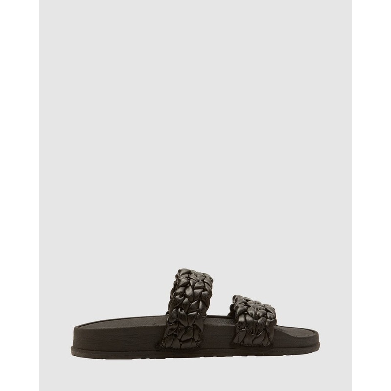 Fabric: Soft synthetic leather, puff braid multi-strap slide upper fabric