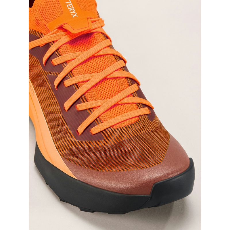 Low-profile running shoe designed to climb through technical vertical terrain.